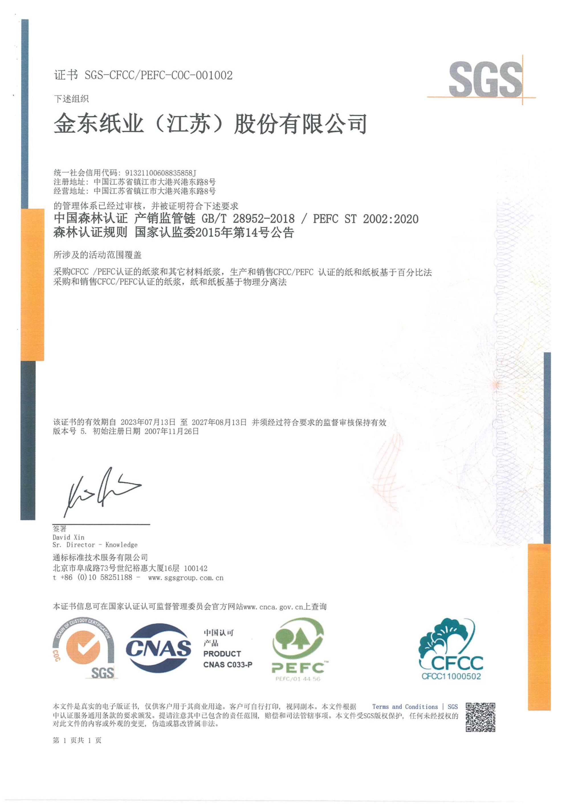 2016年4月19日 通过CFCC中国森林产销监管链认证(首次认证)