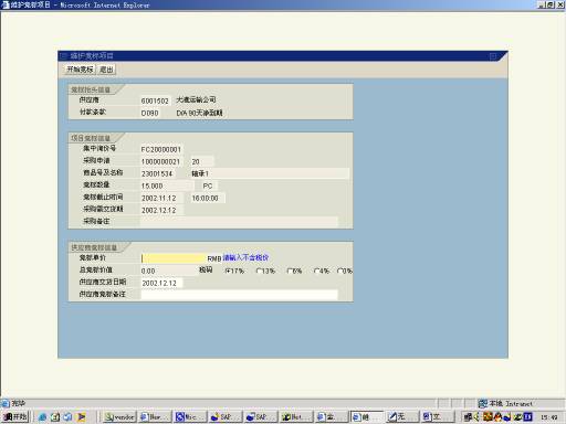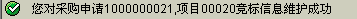 | V. 检查此竞标项的信息,然后输入您的竞标单价、税率、供应商交货日期、备注,最后按“开始竞标”则您就竞标价格就维护好了,在屏幕的左下角出现提示信息 |